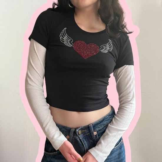 angel heart rhinestone layered long sleeve - S, M, XL