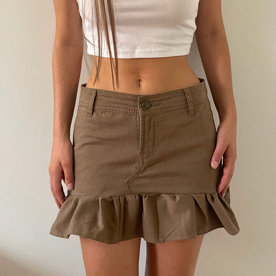 brown ruffled mini skirt -SMALL