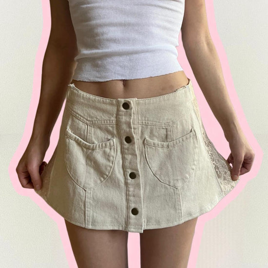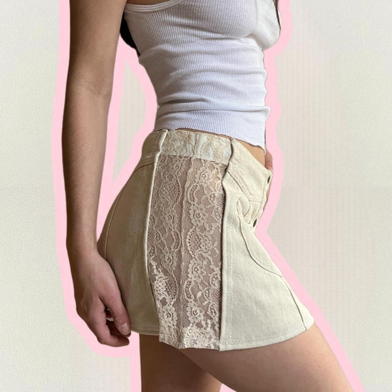 coquette little mini skirt with sheer lace sides! completely one of a kind and upcycled from secondhand materials :)