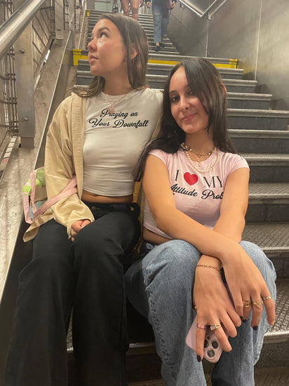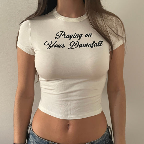 out here praying on your complete and utter downfall. soft and slinky fitted baby tee that speaks only facts.