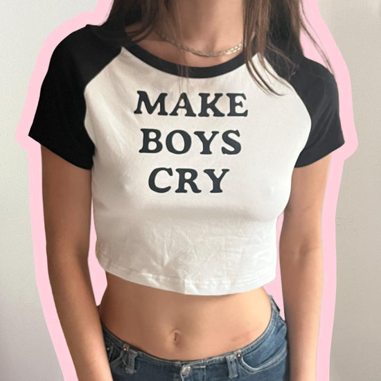 y2k inspired, sassy, black and white crop top because if I have one purpose in life, it’s to make boys cry. let everyone know you’re a heartbreaker with this iconic tank.