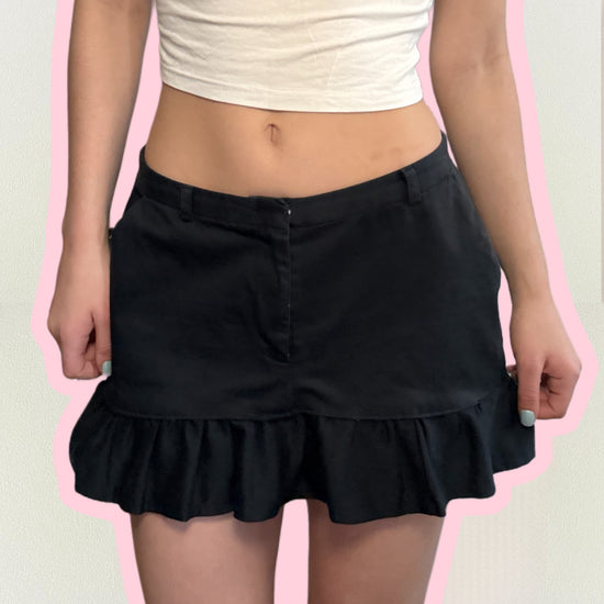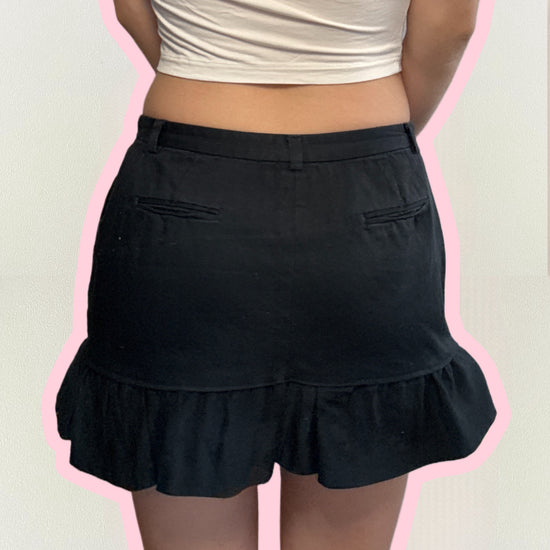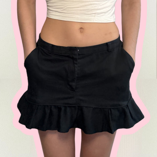1/1 black mini skirt reworked from second-hand trousers. incredibly versatile and perfect for winter with a pair of tights. AND it has pockets!!